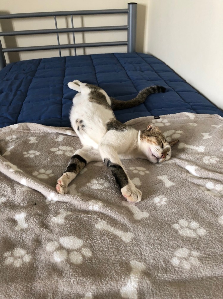 E così è cominciata la nostra nuova avventura, e dopo un po’ di smarrimento, ho capito che in realtà avevo già tutto quello che mi serviva: la lettiera, la copertina, la ciotolina, il pollo e loro due, e non aveva importanza che il container fosse piccolo perché il mondo fuori era grande.